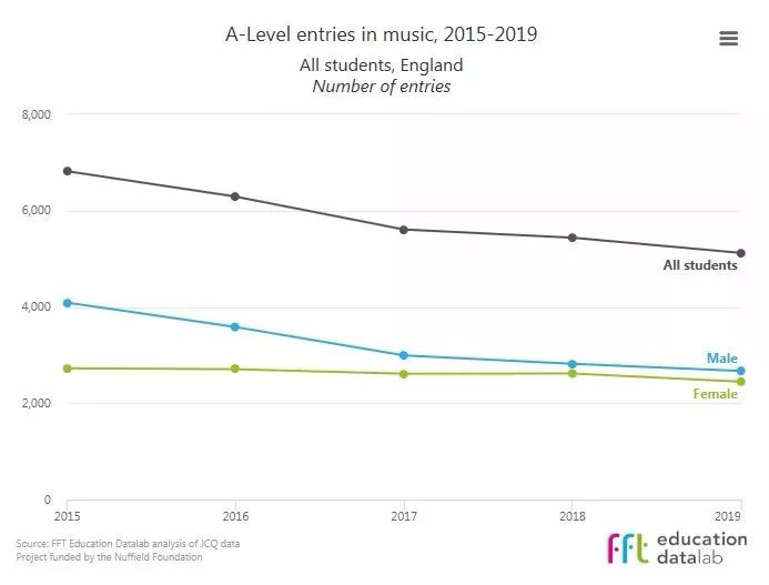 音乐考生人数从去年的5,440下降至今年的5,124。