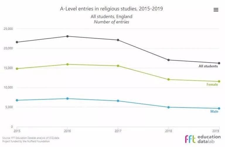 宗教研究考生人数从去年的17,024微幅下降至今年的16,214。
