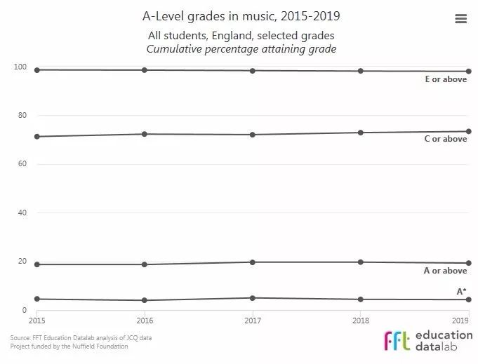 然而,今年英格兰地区的通过率和去年是基本持平的,今年E或以上成绩比例为97.5%,比去年的97.6%略有下滑。