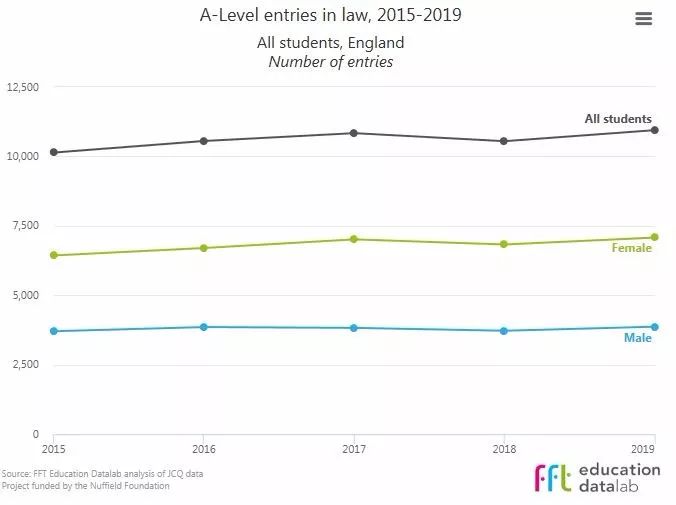 法律考生从去年的10,552微幅增长至今年的10,949。