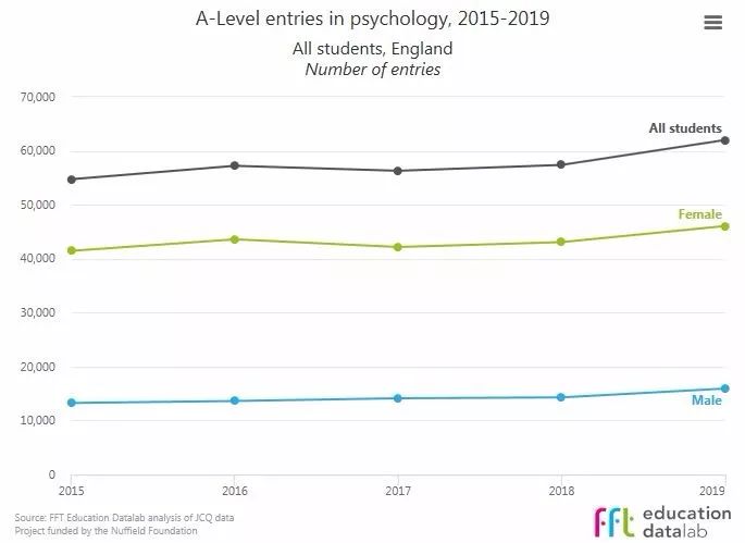 心理学考生人数增加,从去年的 57,405增长至今年的62,021。