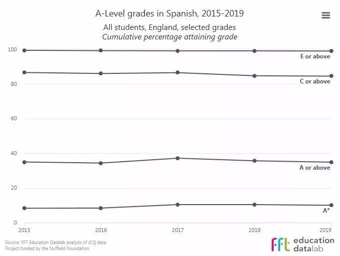 今年是首次西班牙语考生人数超过法语,成为最受欢迎A-level语言科目。