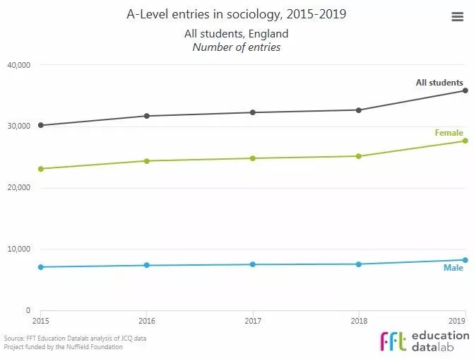 社会学考生人数增加,从去年的32,378增长至今年的35,833。