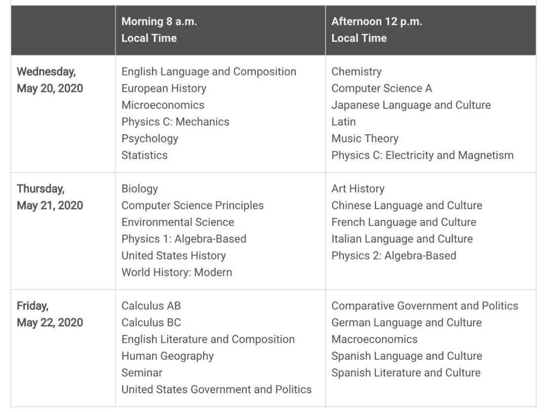 预备在 2020 年参加对应专业 AP 科目考试的同学,如果考虑报考这四个科目中的任何一科,就需要赴大陆之外的其他考场考试,比如,印度、香港、韩国、新加坡等。另外,原本 AP 考试的报名是在每年的 12 月进行,但从今年起,时间将提前至10月。