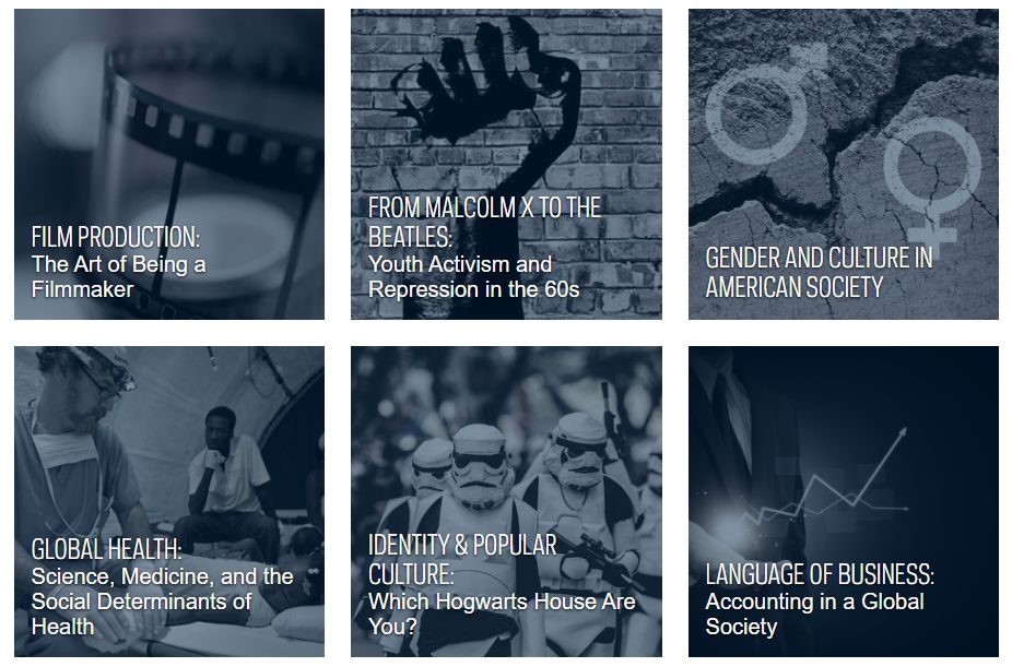 特色:竞争激烈。旨在集合有才华,有激情,想法的年轻的领导者们,进而将这些想法付诸于实际行动。开展6个不同学科的暑期项目,包括:政治学、法律、经济学;国际事务与安全;科技、创新与企业家精神;应用科学与工程学;生物医学;可持续发展、能源与环境。