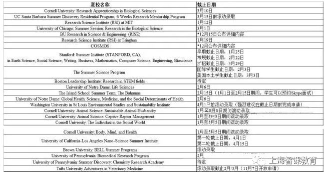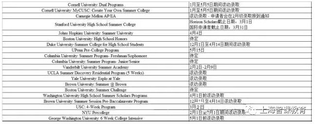 夏校申请截止时间
