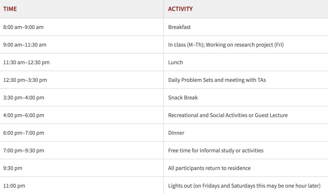 Stanford University Mathematics Camp斯坦福大学数学营(SUMaC)为美国三大顶尖数学训练营之一,将带领学生通过讲座、指导研究和解决问题的方式在高等数学的旅行中徜徉知识的大海。在数学环境中,学生将探索当前社会数学的研究方向、重要数学领域的历史发展意义,甚至是跨科学学科的研究与应用。