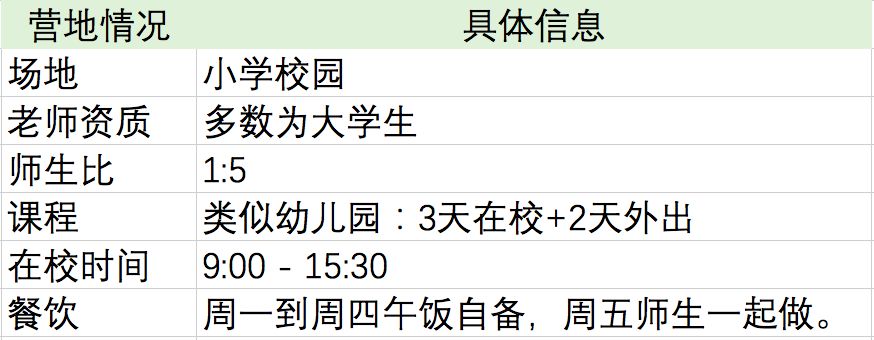 营地条件没有很奢华,学校两栋楼都是一层的,但户外活动场地很大,是个很适合孩子的地方。志愿者像大哥哥、大姐姐一样照顾小朋友,都很负责。夏令营以一周为单位报名,我们参加了2周。