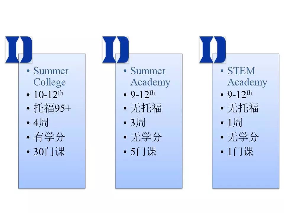 美国大学为了满足世界学生的不同需求(内容上、时间上、种族上,etc.),设置了名目繁多、花样无穷的夏校课程。打开官网,基本都是一头雾水地陷入 “选择困难症”。不花个一整天时间好好研究下官网,怎么对的起那些煞费苦心的课程设计者?相比而言,杜克大学的夏校课程还算非常人性,针对高中生的只有三类,分别是:Summer School(SC),Summer Academy(SA)和 STEM Academy(ST).区别在于:
