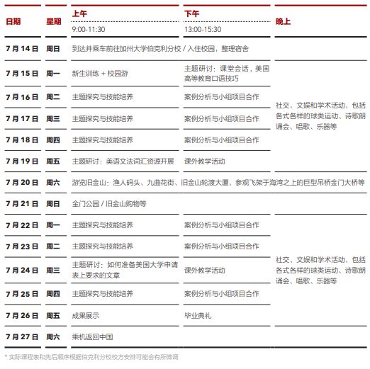 - 学习生活全部在加州大学伯克利分校校内,深度体验世界名校