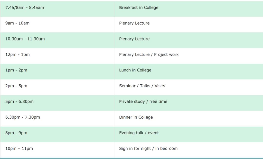 夏令营参与者将在剑桥的菲兹威廉学院(Fitzwilliam College)学习和生活,剑桥将为每位参与者提供一人间住宿和三餐伙食。此项目为寄宿制项目,参与者不能自主安排个人住宿。