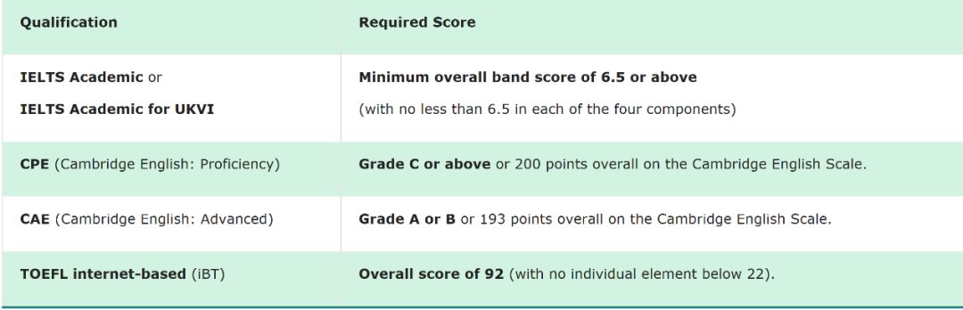 非英语母语的申请者需要提供英语语言能力测试证明(测试日期距申请日期不得超过两年)。