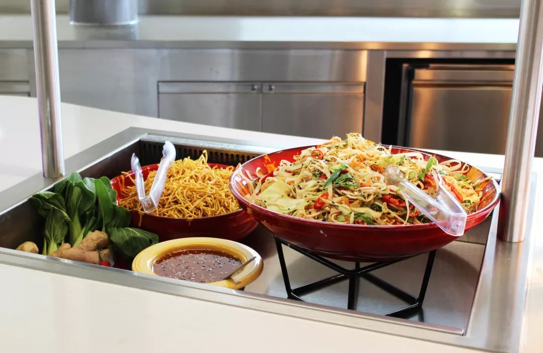 午餐一般提供三种主菜选择,其中一道为素食,配以沙拉、意面、土豆等。餐后有甜点和水果供选择。