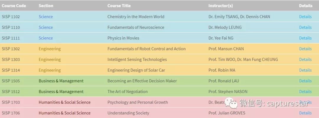 香港科技大学的夏校课程更学术性一些,课程列表如下: