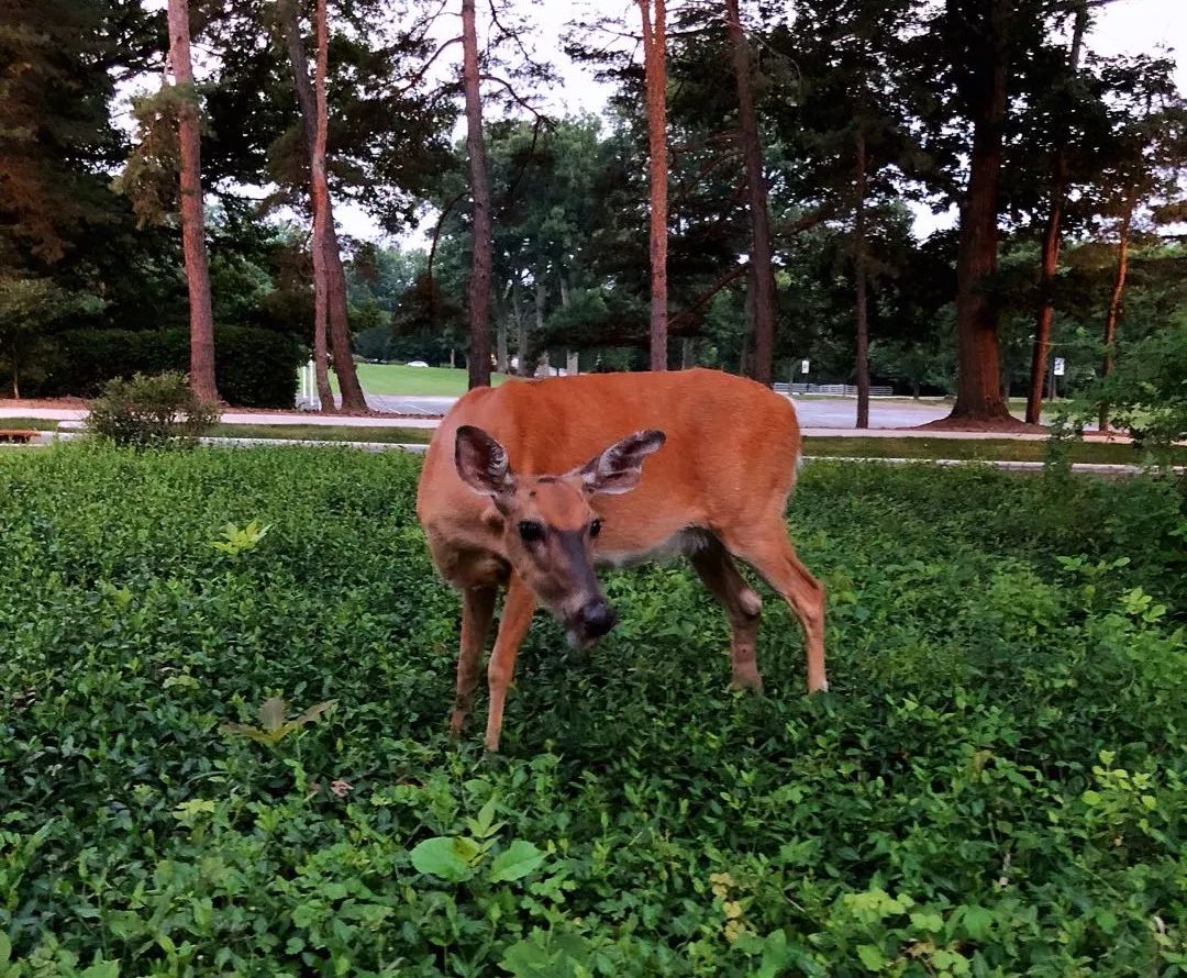 校园面积宽阔,林木森森,松鼠小鹿跳跃其间,俨然一个天然的森林植物园...