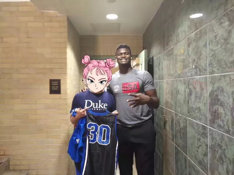在邂逅Zion Williamson时掏出早已备在包里的马克笔与球衣,从而获得了他的亲笔签名球衣!(一旁同学只好在慌乱之中窘迫地交出自己的中性笔和笔记本)
