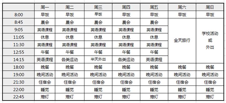 每周25节的英文课课程,是以英语口语教学为核心,超过很多夏校英文课的课时数。