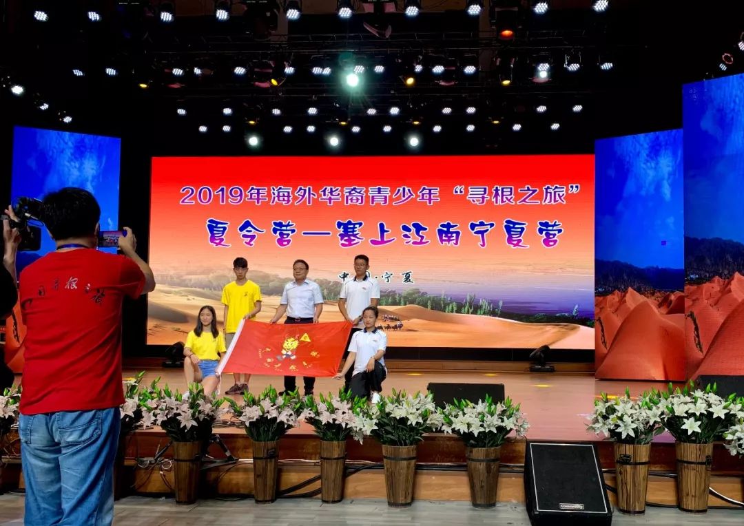 7月23日,由中国侨联主办,宁夏侨联承办的2019年“寻根之旅”夏令营——塞上江南宁夏营,在石嘴山市正式开营,并为夏令营授旗。来自美国、英国、西班牙、德国等8个国家的90余名华裔青少年相聚“神奇宁夏——塞上江南石嘴山”,开启为期10天的“寻根之旅”。