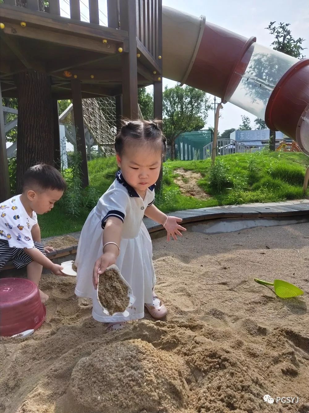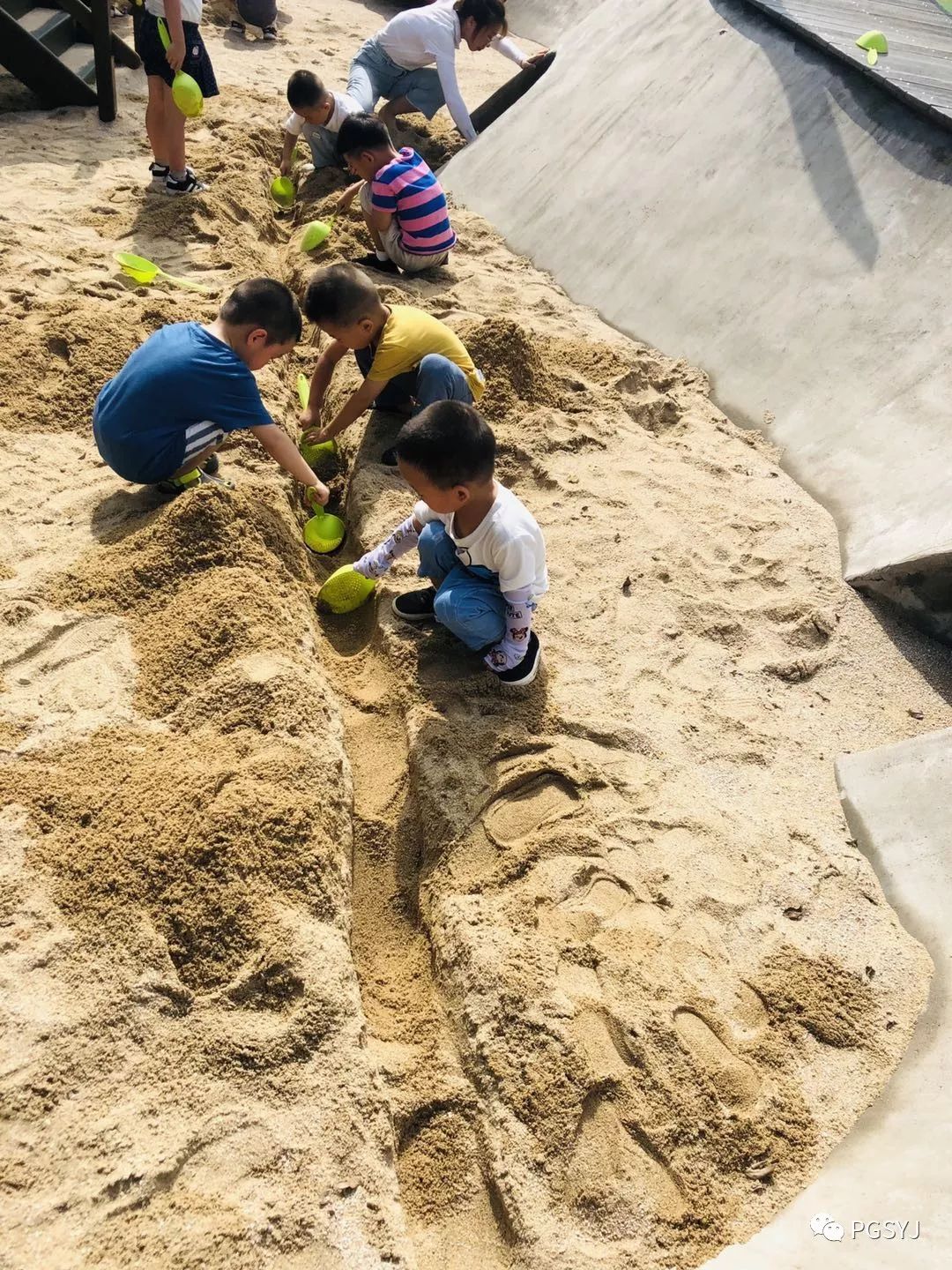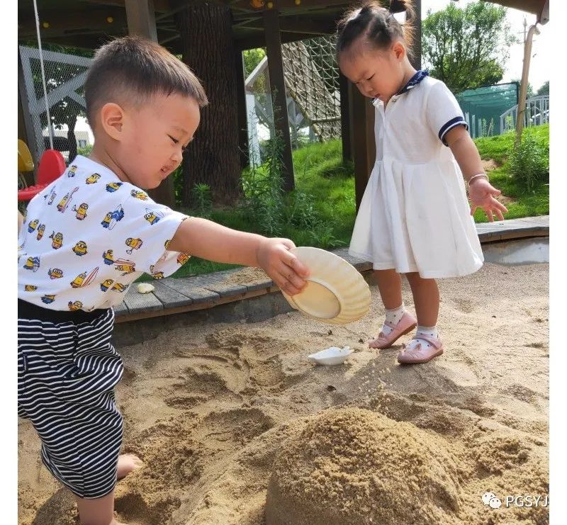 孩子们有着不同的探索和创想:原来沙子玩法有这么多!可以搭城堡、引小河、筑堤坝、挖隧道......哈佛班和牛顿的孩子虽然不能像哥哥姐姐那样,但沙子从指缝中流动的感觉也是棒棒哒。