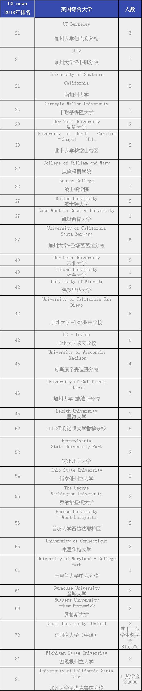 其中,6名同学获得排名21的美国顶尖大学录取, 1名同学同时被美国五所排名前30顶尖名校录取,分别是加州大学洛杉矶分校、南加州大学、卡耐基梅隆大学、纽约大学、北卡大学教堂山,其中有四所是新常春藤名校;三位同学收到加州大学伯克利分校的录取。