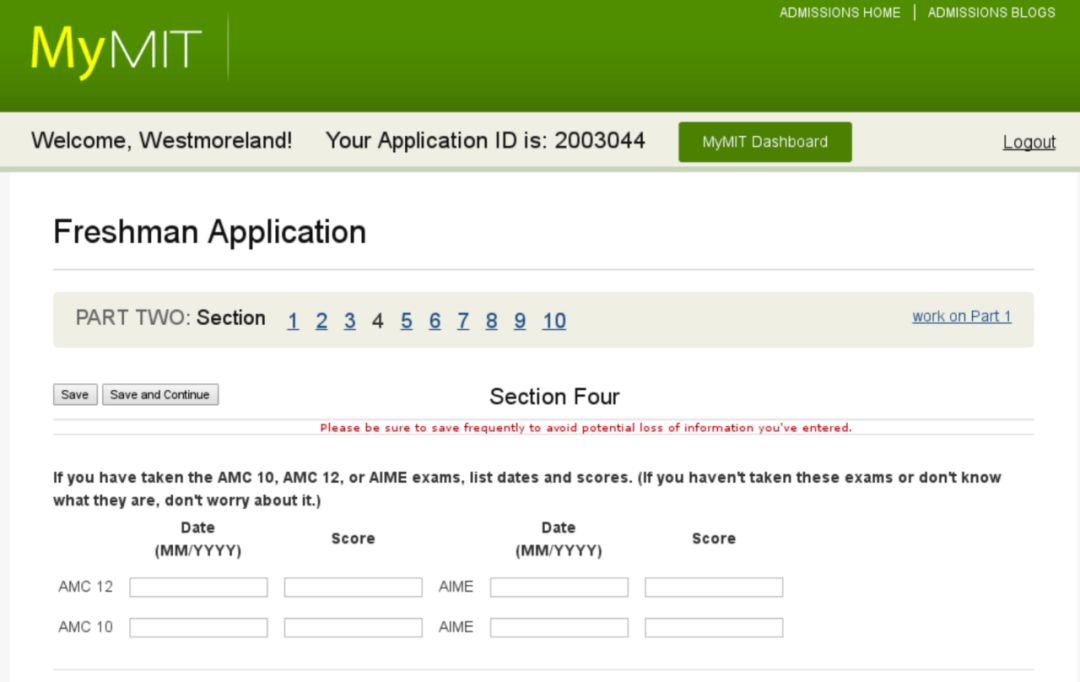 MIT本科申请时可填写数学竞赛成绩: