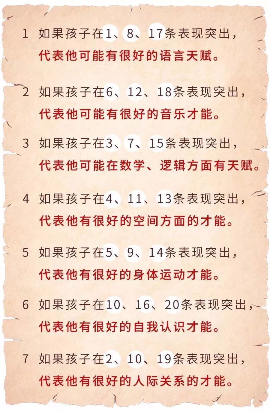 之前我写过几篇如何发掘宝宝天赋、培养宝宝兴趣爱好的文章,在《到底该如何挖掘孩子天赋?》《孩子想放弃兴趣班时,我们该尊重还是死磕到底?》这两篇文章里,有妈妈留言说,有没有一些更具体、清晰的指标,能让我们在日常生活中,对照娃的表现,找到娃对应的天赋。比如说,孩子爱玩角色扮演、孩子喜欢跟着音乐摇摆、孩子对教的儿歌记得很牢、孩子很容易觉察到别人的情绪……这些分别代表娃有什么天赋?