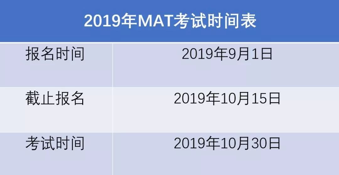2019年的MAT考试时间
