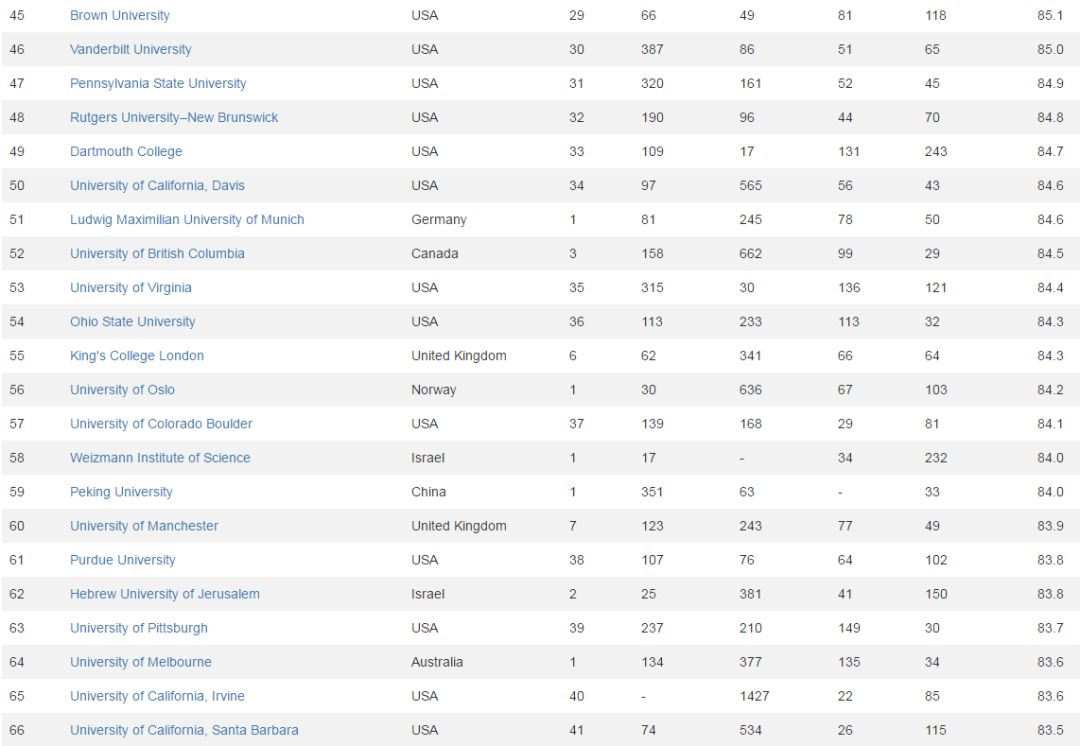 CWUR世界大学排名出炉:英美高校霸占榜单前十