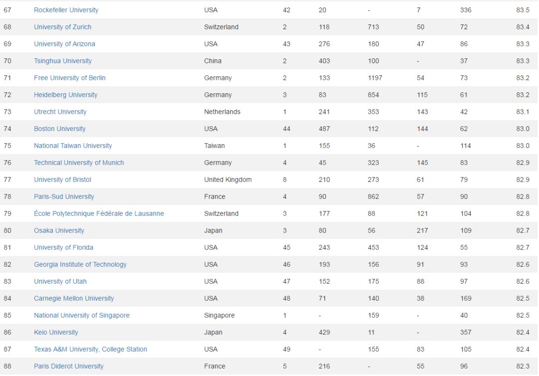 此次排名中,中国共有298所高校入榜:其中内地高校249所,中国台湾高校40所,中国香港高校7所,中国澳门高校2所。