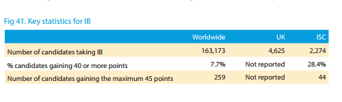 在IB课程上,英国私立学校学生获得40分以上成绩(满分45分)的比例是世界平均比例的四倍;