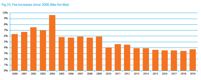 私立学校学费增长率在下降