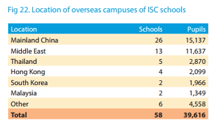 越来越多的私立学校在海外开设分校,拥有学生约39616人。其中,中国最多,为26所,学生人数为15137人。