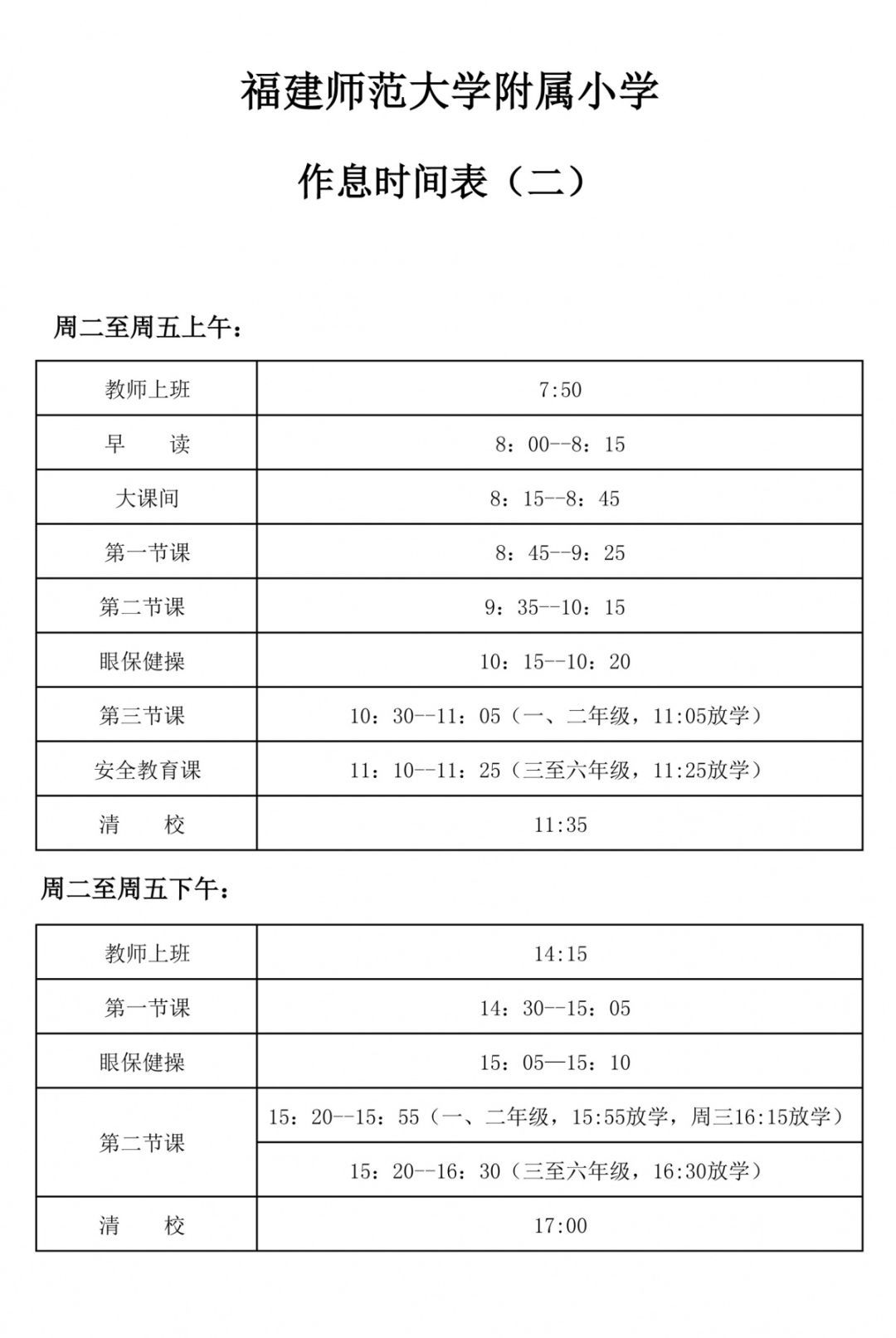 孩子升入小学,一天中最多的时光是需要潜心投入到校园生活的,因此身为家长更需要清楚小朋友们每天在学校的课程安排,下面附上2019年师大附小公布的作息时间表,大家可以作为一个参考。