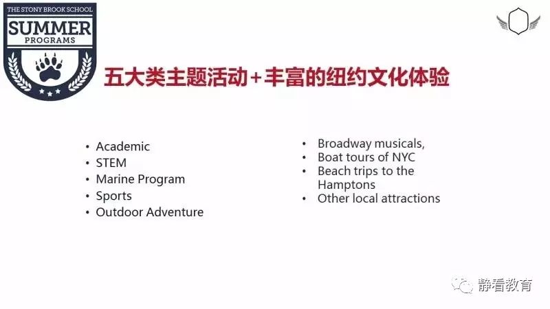 今年我们决定带孩子们参加夏校。因为我们希望孩子们可以真正切身实地进入美国当地学校进行学习和体验,不同课程的选择可以帮助孩子发现自身的兴趣爱好,全英文环境可以帮助他们迅速提升语言能力,他们可以和来自世界各地的小伙伴玩耍,了解不同国家的多元文化,开拓国际视野。从10多个学校中,我们选择了石溪中学。因为这所中学课程灵活、丰富、难度适中,有2周和4周自由选择。地理位置也极佳,坐落于美丽的长岛北岸,离纽约也就一个小时的车程。
