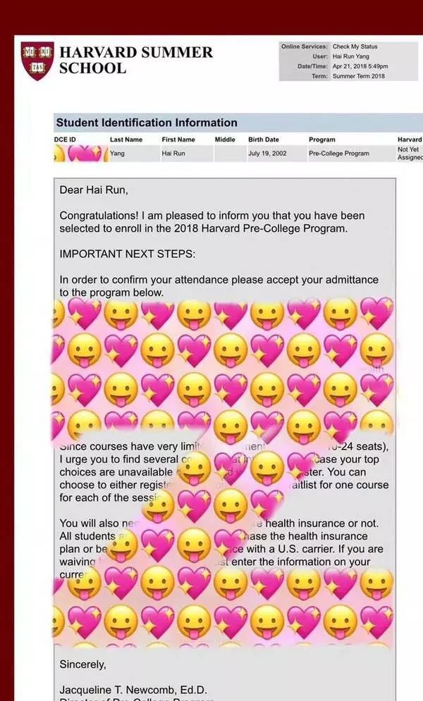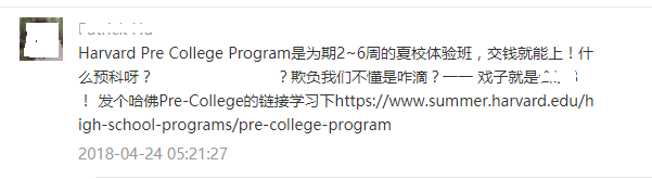 看来杨子的女儿确实很优秀。然而,美华生活刊发这条消息后,却有很多网友留言或私信,对哈佛的pre-college项目做了解读,认为这又不是被哈佛录取,只是夏令营而已,与被哈佛录取根本不沾边儿。