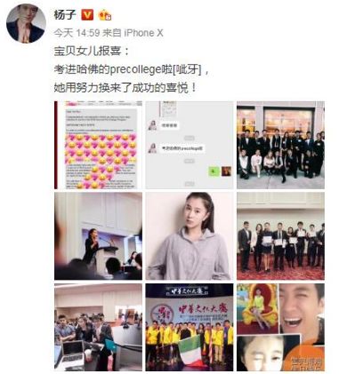 前两天,中国艺人兼企业家杨子通过微博报喜:她16岁的女儿杨海润考取哈佛precollege了。杨子在微博上说:宝贝女儿报喜:考进哈佛的pre-college啦,她用努力换来了成功的喜悦!